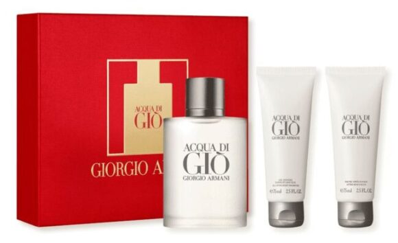 Acqua di Giò Gift Set contiene 100 ml eau de toilette + gel doccia da 75 ml e un deodorante in stick da 75 ml. E’ il regalo perfetto per le persone che ami. E’ una fragranza che si ispira alle coste dell’Isola di Pantelleria e unisce il dolce alla brezza marina, evocando i tipici odori del mare. Una sensazione di freschezza e benessere, una fragranza autentica e naturale che rappresenta la forza maschile nella sua massima espressione. La freschezza del bergamotto e del neroli, rinvigorita dall’energia del mandarino verde è racchiusa da un rettangolo di vetro simmetrico. Un trionfo di note marine, fiorite come il gelsomino, incisive come il cisto e il rosmarino, fruttate come il kaki. La fragranza è contenuta in un flacone molto semplice, di vetro satinato trasparente, terminante con un tappo grigio perla.