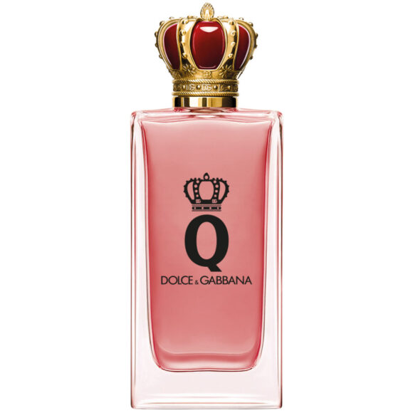 D&G Q Eau De Parfum Intense è una fragranza piena di energia femminile radiosa e raffinata. si fa ancora più audace nella nuova versione Eau de Parfum Intense. La nota calda della Ciliegia Scura si mescola a un cuore di inebriante Eliotropo. Ma è sul fondo che rivela la sua natura ambrata irresistibilmente sensuale. Note frizzanti di limone siciliano e arancia rossa sono esaltate da delicati petali di gelsomino. Raffigura una corona regale in oro e rosso, sia nel vetro che racchiude l’essenza di un deciso color ciliegia.