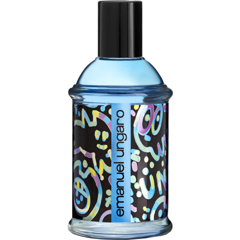 è pensato per un uomo cosmopolita, nativo digitale, interessato alla street art, trendy ed estroverso, desideroso di esprimere il proprio stile. In apertura, il pompelmo e il bergamotto si fondono con raffinata vitalità al tocco speziato della noce moscata. il cuore ci conduce in un’atmosfera carismatica, dove le note seducenti della cannella giocano con quelle eleganti dell’iris. Sul fondo una forte personalità si rivela attraverso le note distintive del legno di cedro e dalla sensuale fava tonka. Il flacone presenta una trama accattivante che ricorda la street art. Il colore blu rimanda all’universo maschile. Il tocco neon celebra l’uso irriverente e innovativo del colore di Emanuel Ungaro.